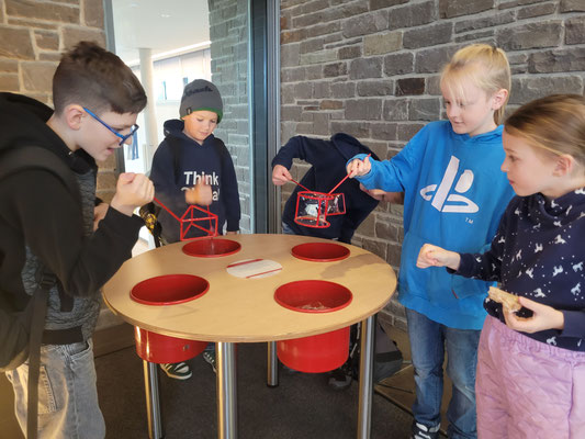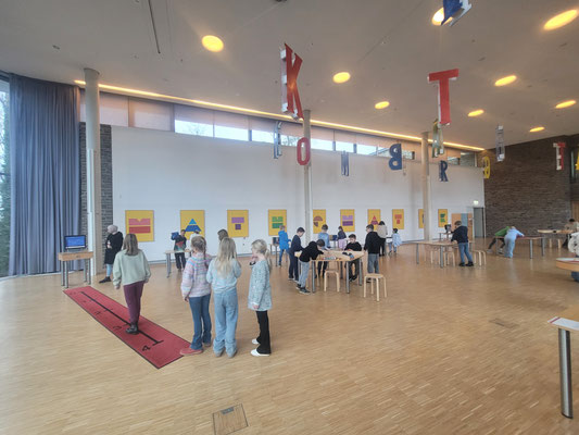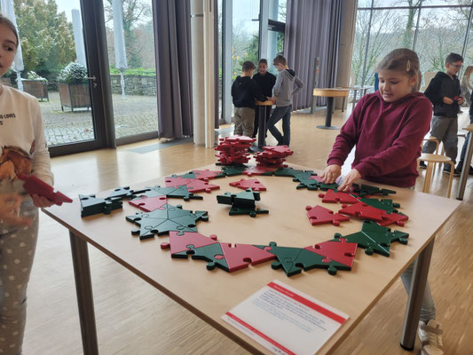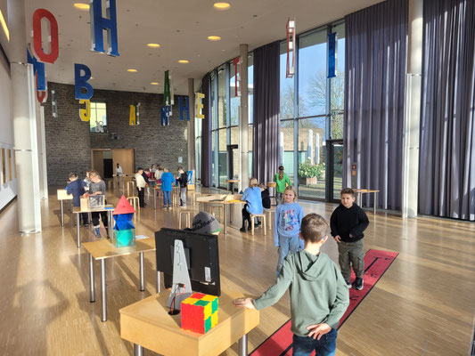 Die Klasse 4bk hat sich am heutigen Donnerstag auf den Weg nach Nümbrecht gemacht. Im Schloss Homburg wartete die Mitmachausstellung "Mathematik zum Anfassen" auf die Kinder. An zahlreichen Stationen konnten die Kinder erleben, wie spannend Mathematik sein. Es wurde gebaut, gepuzzelt und ausprobiert. Langeweile kam keine auf, und die Zeit verging wie im Fluge.