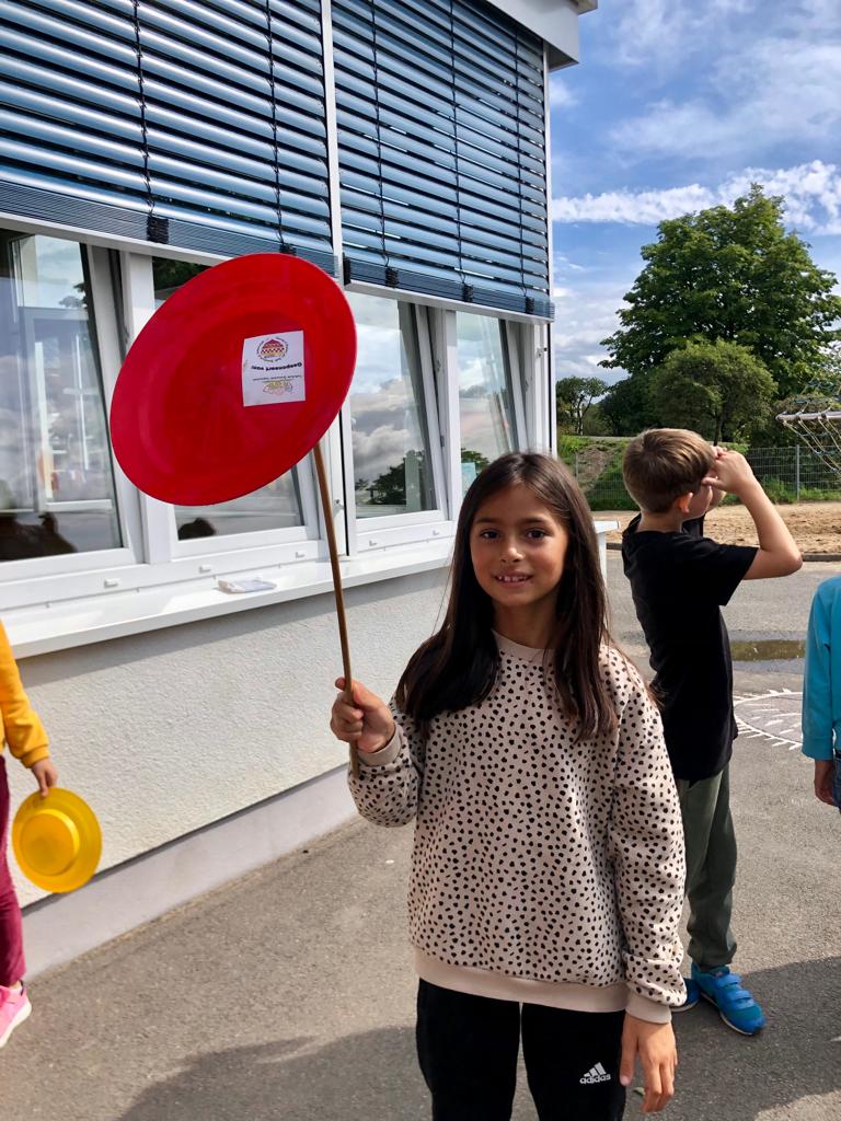 Heute haben wir in Anlehnung an das Bild „Aerobic Church“ von Friedensreich Hundertwasser eigene „Hundertwasserhäuser“ als Gemeinschaftsarbeit geschaffen. Die Kinder waren sehr begeistert vom Gesamtbild und auch stolz, Teil davon zu sein. Während des Malens habe ich die jeweils fertigen Teile immer gleich aufgeklebt, sodass die Kinder einem Kunstwerk bei seiner Entstehung zugucken konnten. Eine tolle Erfahrung!