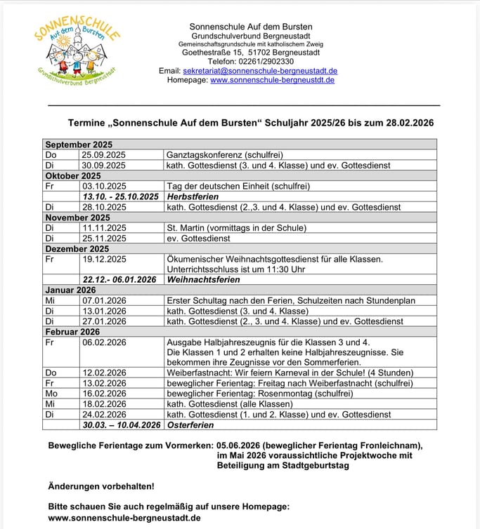 Termine im Schuljahr 2025/2026